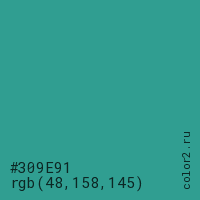 Цвет #309E91 в цветовой модели RGB обозначается тремя октетами (48, 158, 145) в десятичном формате и #309E91 в шестнадцатиричном (hex) формате, которые являются интенсивностью красного 48 (hex 30), интенсивность зелёного 158 (hex 9E) и интенсивность синего 145 (hex 91).
