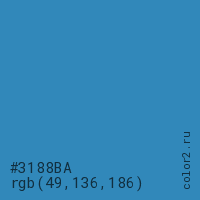 Цвет #3188BA в цветовой модели RGB обозначается тремя октетами (49, 136, 186) в десятичном формате и #3188BA в шестнадцатиричном (hex) формате, которые являются интенсивностью красного 49 (hex 31), интенсивность зелёного 136 (hex 88) и интенсивность синего 186 (hex BA).