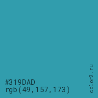 Цвет #319DAD в цветовой модели RGB обозначается тремя октетами (49, 157, 173) в десятичном формате и #319DAD в шестнадцатиричном (hex) формате, которые являются интенсивностью красного 49 (hex 31), интенсивность зелёного 157 (hex 9D) и интенсивность синего 173 (hex AD).