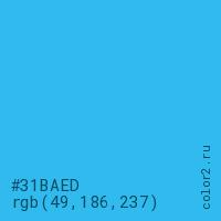 Цвет #31BAED в цветовой модели RGB обозначается тремя октетами (49, 186, 237) в десятичном формате и #31BAED в шестнадцатиричном (hex) формате, которые являются интенсивностью красного 49 (hex 31), интенсивность зелёного 186 (hex BA) и интенсивность синего 237 (hex ED).