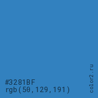 Цвет #3281BF в цветовой модели RGB обозначается тремя октетами (50, 129, 191) в десятичном формате и #3281BF в шестнадцатиричном (hex) формате, которые являются интенсивностью красного 50 (hex 32), интенсивность зелёного 129 (hex 81) и интенсивность синего 191 (hex BF).