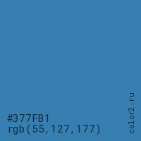 Цвет #377FB1 в цветовой модели RGB обозначается тремя октетами (55, 127, 177) в десятичном формате и #377FB1 в шестнадцатиричном (hex) формате, которые являются интенсивностью красного 55 (hex 37), интенсивность зелёного 127 (hex 7F) и интенсивность синего 177 (hex B1).