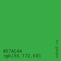 Цвет #37AC44 в цветовой модели RGB обозначается тремя октетами (55, 172, 68) в десятичном формате и #37AC44 в шестнадцатиричном (hex) формате, которые являются интенсивностью красного 55 (hex 37), интенсивность зелёного 172 (hex AC) и интенсивность синего 68 (hex 44).