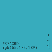 Цвет #37ACBD в цветовой модели RGB обозначается тремя октетами (55, 172, 189) в десятичном формате и #37ACBD в шестнадцатиричном (hex) формате, которые являются интенсивностью красного 55 (hex 37), интенсивность зелёного 172 (hex AC) и интенсивность синего 189 (hex BD).