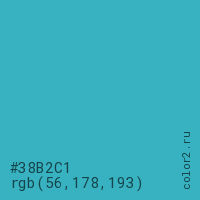Цвет #38B2C1 в цветовой модели RGB обозначается тремя октетами (56, 178, 193) в десятичном формате и #38B2C1 в шестнадцатиричном (hex) формате, которые являются интенсивностью красного 56 (hex 38), интенсивность зелёного 178 (hex B2) и интенсивность синего 193 (hex C1).