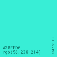 Цвет #38EED6 в цветовой модели RGB обозначается тремя октетами (56, 238, 214) в десятичном формате и #38EED6 в шестнадцатиричном (hex) формате, которые являются интенсивностью красного 56 (hex 38), интенсивность зелёного 238 (hex EE) и интенсивность синего 214 (hex D6).