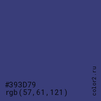 Цвет #393D79 в цветовой модели RGB обозначается тремя октетами (57, 61, 121) в десятичном формате и #393D79 в шестнадцатиричном (hex) формате, которые являются интенсивностью красного 57 (hex 39), интенсивность зелёного 61 (hex 3D) и интенсивность синего 121 (hex 79).