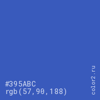 Цвет #395ABC в цветовой модели RGB обозначается тремя октетами (57, 90, 188) в десятичном формате и #395ABC в шестнадцатиричном (hex) формате, которые являются интенсивностью красного 57 (hex 39), интенсивность зелёного 90 (hex 5A) и интенсивность синего 188 (hex BC).