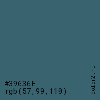 Цвет #39636E в цветовой модели RGB обозначается тремя октетами (57, 99, 110) в десятичном формате и #39636E в шестнадцатиричном (hex) формате, которые являются интенсивностью красного 57 (hex 39), интенсивность зелёного 99 (hex 63) и интенсивность синего 110 (hex 6E).
