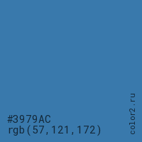 Цвет #3979AC в цветовой модели RGB обозначается тремя октетами (57, 121, 172) в десятичном формате и #3979AC в шестнадцатиричном (hex) формате, которые являются интенсивностью красного 57 (hex 39), интенсивность зелёного 121 (hex 79) и интенсивность синего 172 (hex AC).