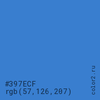 Цвет #397ECF в цветовой модели RGB обозначается тремя октетами (57, 126, 207) в десятичном формате и #397ECF в шестнадцатиричном (hex) формате, которые являются интенсивностью красного 57 (hex 39), интенсивность зелёного 126 (hex 7E) и интенсивность синего 207 (hex CF).