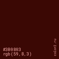 | RGB | rgb(59, 8, 3) |