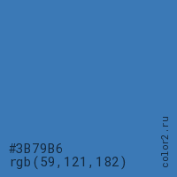 Цвет #3B79B6 в цветовой модели RGB обозначается тремя октетами (59, 121, 182) в десятичном формате и #3B79B6 в шестнадцатиричном (hex) формате, которые являются интенсивностью красного 59 (hex 3B), интенсивность зелёного 121 (hex 79) и интенсивность синего 182 (hex B6).