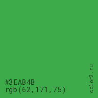 Цвет #3EAB4B в цветовой модели RGB обозначается тремя октетами (62, 171, 75) в десятичном формате и #3EAB4B в шестнадцатиричном (hex) формате, которые являются интенсивностью красного 62 (hex 3E), интенсивность зелёного 171 (hex AB) и интенсивность синего 75 (hex 4B).