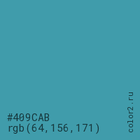 Цвет #409CAB в цветовой модели RGB обозначается тремя октетами (64, 156, 171) в десятичном формате и #409CAB в шестнадцатиричном (hex) формате, которые являются интенсивностью красного 64 (hex 40), интенсивность зелёного 156 (hex 9C) и интенсивность синего 171 (hex AB).