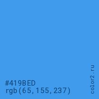 Цвет #419BED в цветовой модели RGB обозначается тремя октетами (65, 155, 237) в десятичном формате и #419BED в шестнадцатиричном (hex) формате, которые являются интенсивностью красного 65 (hex 41), интенсивность зелёного 155 (hex 9B) и интенсивность синего 237 (hex ED).