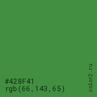 Цвет #428F41 в цветовой модели RGB обозначается тремя октетами (66, 143, 65) в десятичном формате и #428F41 в шестнадцатиричном (hex) формате, которые являются интенсивностью красного 66 (hex 42), интенсивность зелёного 143 (hex 8F) и интенсивность синего 65 (hex 41).