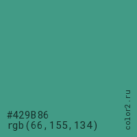 Цвет #429B86 в цветовой модели RGB обозначается тремя октетами (66, 155, 134) в десятичном формате и #429B86 в шестнадцатиричном (hex) формате, которые являются интенсивностью красного 66 (hex 42), интенсивность зелёного 155 (hex 9B) и интенсивность синего 134 (hex 86).