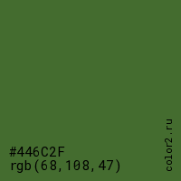 Цвет #446C2F в цветовой модели RGB обозначается тремя октетами (68, 108, 47) в десятичном формате и #446C2F в шестнадцатиричном (hex) формате, которые являются интенсивностью красного 68 (hex 44), интенсивность зелёного 108 (hex 6C) и интенсивность синего 47 (hex 2F).
