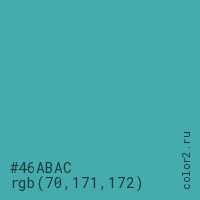 Цвет #46ABAC в цветовой модели RGB обозначается тремя октетами (70, 171, 172) в десятичном формате и #46ABAC в шестнадцатиричном (hex) формате, которые являются интенсивностью красного 70 (hex 46), интенсивность зелёного 171 (hex AB) и интенсивность синего 172 (hex AC).