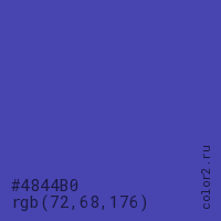 Цвет #4844B0 в цветовой модели RGB обозначается тремя октетами (72, 68, 176) в десятичном формате и #4844B0 в шестнадцатиричном (hex) формате, которые являются интенсивностью красного 72 (hex 48), интенсивность зелёного 68 (hex 44) и интенсивность синего 176 (hex B0).