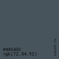 Цвет #48545C в цветовой модели RGB обозначается тремя октетами (72, 84, 92) в десятичном формате и #48545C в шестнадцатиричном (hex) формате, которые являются интенсивностью красного 72 (hex 48), интенсивность зелёного 84 (hex 54) и интенсивность синего 92 (hex 5C).
