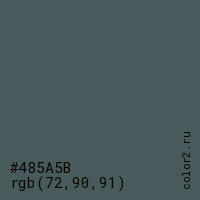 Цвет #485A5B в цветовой модели RGB обозначается тремя октетами (72, 90, 91) в десятичном формате и #485A5B в шестнадцатиричном (hex) формате, которые являются интенсивностью красного 72 (hex 48), интенсивность зелёного 90 (hex 5A) и интенсивность синего 91 (hex 5B).