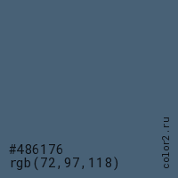 Цвет #486176 в цветовой модели RGB обозначается тремя октетами (72, 97, 118) в десятичном формате и #486176 в шестнадцатиричном (hex) формате, которые являются интенсивностью красного 72 (hex 48), интенсивность зелёного 97 (hex 61) и интенсивность синего 118 (hex 76).