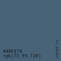 Цвет #486378 в цветовой модели RGB обозначается тремя октетами (72, 99, 120) в десятичном формате и #486378 в шестнадцатиричном (hex) формате, которые являются интенсивностью красного 72 (hex 48), интенсивность зелёного 99 (hex 63) и интенсивность синего 120 (hex 78).