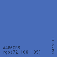 Цвет #486CB9 в цветовой модели RGB обозначается тремя октетами (72, 108, 185) в десятичном формате и #486CB9 в шестнадцатиричном (hex) формате, которые являются интенсивностью красного 72 (hex 48), интенсивность зелёного 108 (hex 6C) и интенсивность синего 185 (hex B9).