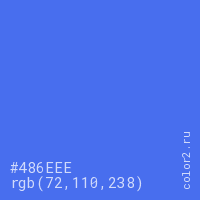Цвет #486EEE в цветовой модели RGB обозначается тремя октетами (72, 110, 238) в десятичном формате и #486EEE в шестнадцатиричном (hex) формате, которые являются интенсивностью красного 72 (hex 48), интенсивность зелёного 110 (hex 6E) и интенсивность синего 238 (hex EE).