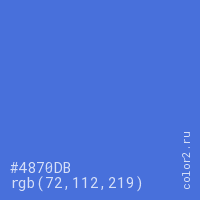 Цвет #4870DB в цветовой модели RGB обозначается тремя октетами (72, 112, 219) в десятичном формате и #4870DB в шестнадцатиричном (hex) формате, которые являются интенсивностью красного 72 (hex 48), интенсивность зелёного 112 (hex 70) и интенсивность синего 219 (hex DB).