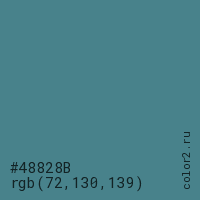 Цвет #48828B в цветовой модели RGB обозначается тремя октетами (72, 130, 139) в десятичном формате и #48828B в шестнадцатиричном (hex) формате, которые являются интенсивностью красного 72 (hex 48), интенсивность зелёного 130 (hex 82) и интенсивность синего 139 (hex 8B).