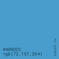 Цвет #489DCC в цветовой модели RGB обозначается тремя октетами (72, 157, 204) в десятичном формате и #489DCC в шестнадцатиричном (hex) формате, которые являются интенсивностью красного 72 (hex 48), интенсивность зелёного 157 (hex 9D) и интенсивность синего 204 (hex CC).
