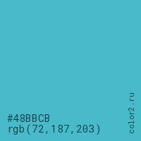 Цвет #48BBCB в цветовой модели RGB обозначается тремя октетами (72, 187, 203) в десятичном формате и #48BBCB в шестнадцатиричном (hex) формате, которые являются интенсивностью красного 72 (hex 48), интенсивность зелёного 187 (hex BB) и интенсивность синего 203 (hex CB).