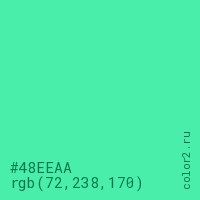 Цвет #48EEAA в цветовой модели RGB обозначается тремя октетами (72, 238, 170) в десятичном формате и #48EEAA в шестнадцатиричном (hex) формате, которые являются интенсивностью красного 72 (hex 48), интенсивность зелёного 238 (hex EE) и интенсивность синего 170 (hex AA).