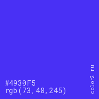 Цвет #4930F5 в цветовой модели RGB обозначается тремя октетами (73, 48, 245) в десятичном формате и #4930F5 в шестнадцатиричном (hex) формате, которые являются интенсивностью красного 73 (hex 49), интенсивность зелёного 48 (hex 30) и интенсивность синего 245 (hex F5).
