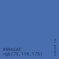 Цвет #496EAF в цветовой модели RGB обозначается тремя октетами (73, 110, 175) в десятичном формате и #496EAF в шестнадцатиричном (hex) формате, которые являются интенсивностью красного 73 (hex 49), интенсивность зелёного 110 (hex 6E) и интенсивность синего 175 (hex AF).