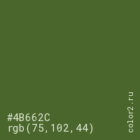 | RGB | rgb(75, 102, 44) |