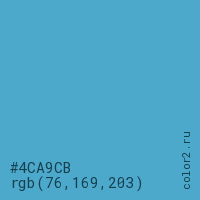 Цвет #4CA9CB в цветовой модели RGB обозначается тремя октетами (76, 169, 203) в десятичном формате и #4CA9CB в шестнадцатиричном (hex) формате, которые являются интенсивностью красного 76 (hex 4C), интенсивность зелёного 169 (hex A9) и интенсивность синего 203 (hex CB).