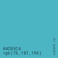 Цвет #4CB5C4 в цветовой модели RGB обозначается тремя октетами (76, 181, 196) в десятичном формате и #4CB5C4 в шестнадцатиричном (hex) формате, которые являются интенсивностью красного 76 (hex 4C), интенсивность зелёного 181 (hex B5) и интенсивность синего 196 (hex C4).