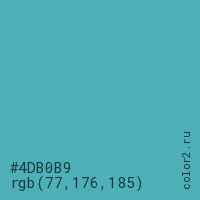 Цвет #4DB0B9 в цветовой модели RGB обозначается тремя октетами (77, 176, 185) в десятичном формате и #4DB0B9 в шестнадцатиричном (hex) формате, которые являются интенсивностью красного 77 (hex 4D), интенсивность зелёного 176 (hex B0) и интенсивность синего 185 (hex B9).