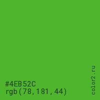 Цвет #4EB52C в цветовой модели RGB обозначается тремя октетами (78, 181, 44) в десятичном формате и #4EB52C в шестнадцатиричном (hex) формате, которые являются интенсивностью красного 78 (hex 4E), интенсивность зелёного 181 (hex B5) и интенсивность синего 44 (hex 2C).