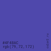 Цвет #4F48AC в цветовой модели RGB обозначается тремя октетами (79, 72, 172) в десятичном формате и #4F48AC в шестнадцатиричном (hex) формате, которые являются интенсивностью красного 79 (hex 4F), интенсивность зелёного 72 (hex 48) и интенсивность синего 172 (hex AC).