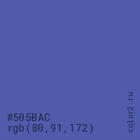 Цвет #505BAC в цветовой модели RGB обозначается тремя октетами (80, 91, 172) в десятичном формате и #505BAC в шестнадцатиричном (hex) формате, которые являются интенсивностью красного 80 (hex 50), интенсивность зелёного 91 (hex 5B) и интенсивность синего 172 (hex AC).