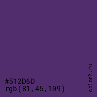 Цвет #512D6D в цветовой модели RGB обозначается тремя октетами (81, 45, 109) в десятичном формате и #512D6D в шестнадцатиричном (hex) формате, которые являются интенсивностью красного 81 (hex 51), интенсивность зелёного 45 (hex 2D) и интенсивность синего 109 (hex 6D).