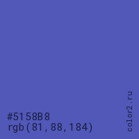 Цвет #5158B8 в цветовой модели RGB обозначается тремя октетами (81, 88, 184) в десятичном формате и #5158B8 в шестнадцатиричном (hex) формате, которые являются интенсивностью красного 81 (hex 51), интенсивность зелёного 88 (hex 58) и интенсивность синего 184 (hex B8).