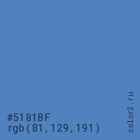 Цвет #5181BF в цветовой модели RGB обозначается тремя октетами (81, 129, 191) в десятичном формате и #5181BF в шестнадцатиричном (hex) формате, которые являются интенсивностью красного 81 (hex 51), интенсивность зелёного 129 (hex 81) и интенсивность синего 191 (hex BF).