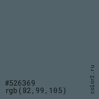 Цвет #526369 в цветовой модели RGB обозначается тремя октетами (82, 99, 105) в десятичном формате и #526369 в шестнадцатиричном (hex) формате, которые являются интенсивностью красного 82 (hex 52), интенсивность зелёного 99 (hex 63) и интенсивность синего 105 (hex 69).