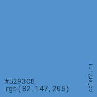 Цвет #5293CD в цветовой модели RGB обозначается тремя октетами (82, 147, 205) в десятичном формате и #5293CD в шестнадцатиричном (hex) формате, которые являются интенсивностью красного 82 (hex 52), интенсивность зелёного 147 (hex 93) и интенсивность синего 205 (hex CD).